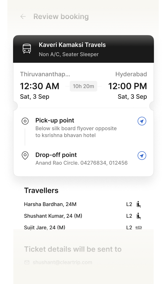 This project was part of the Cleartrip bus team, with the goal of making it easier for users to book bus tickets. While the process of finding buses, checking their details, and making a booking may seem straightforward. We wanted to enhance the overall experience to ensure a smoother and more enjoyable journey for our users.
